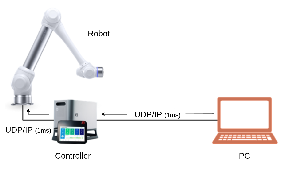 Real-time External Control is a UDP/IP-based communication api for users who want to directly control the robot arm from an external PC through the Doosan controller.