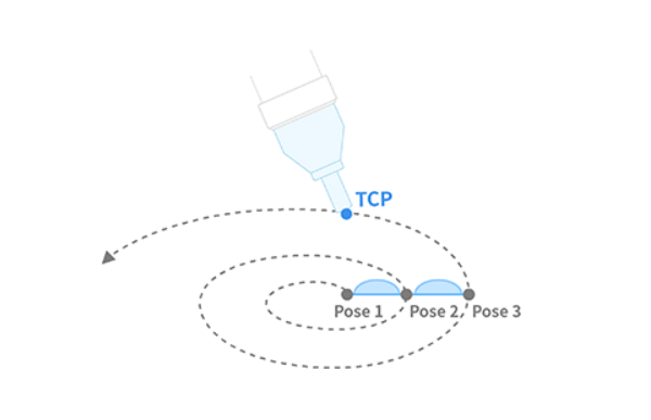 This function executes a spiral trajectory motion in which the robot’s radius gradually increases in the radial direction while moving in parallel with a rotating spiral along the axial direction. The path is formed on a plane perpendicular to the selected axis (eTaskAxis) and the spiral expands outward until it reaches the specified maximum radius and length.