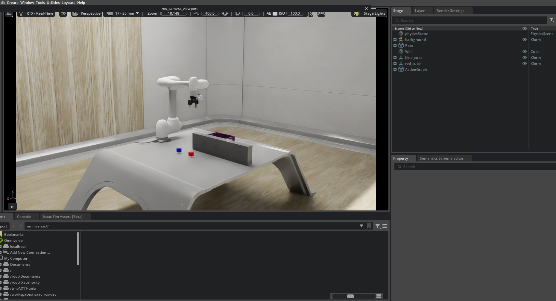 This tutorial is based on Isaac Sim 4.5. Other versions may have differences in APIs, container structure, or ROS 2 bridge behavior.